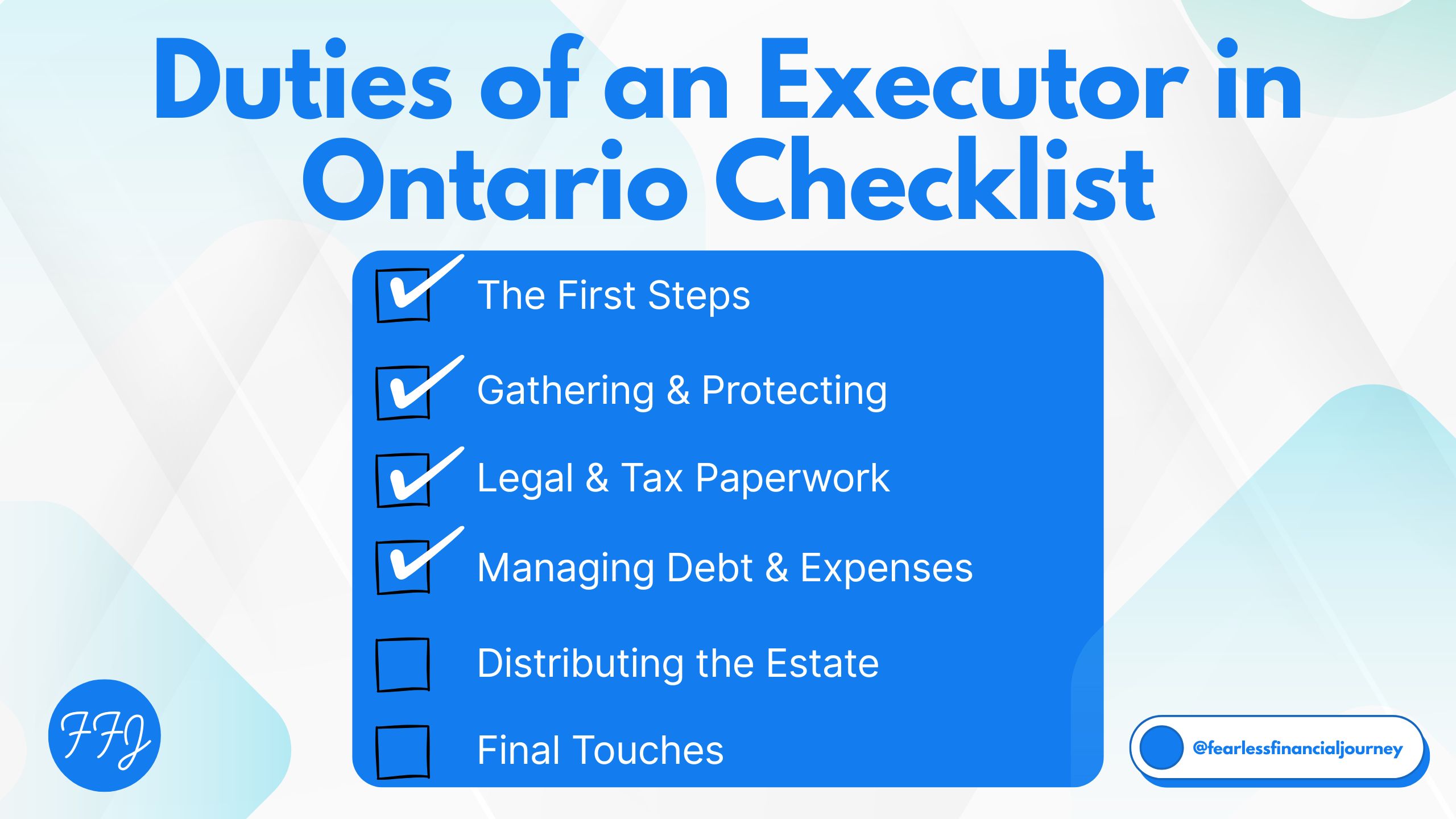 An executor is a legal representative named in a will to handle an estate when someone dies. Undertaking the responsibilities of an executor can be challenging and frustrating, especially after the loss of someone close to you. To make things easier, I’ve created a detailed checklist of the duties of an executor in Ontario.
